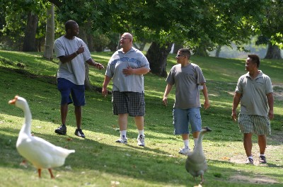 | Support staff Christopher Montgomery, client Gerardo, senior support staff Matthew Vazquez and Cecilio Argila (left to right). |
